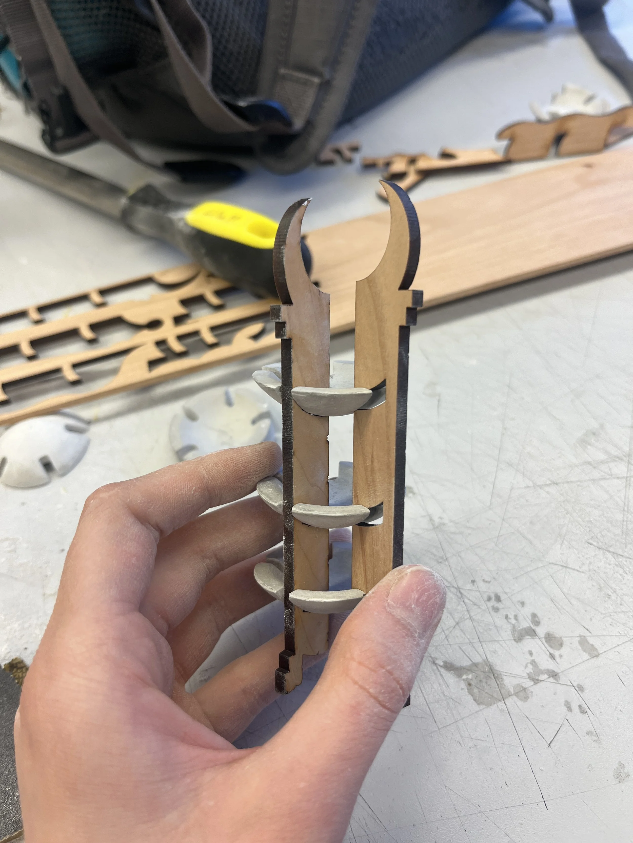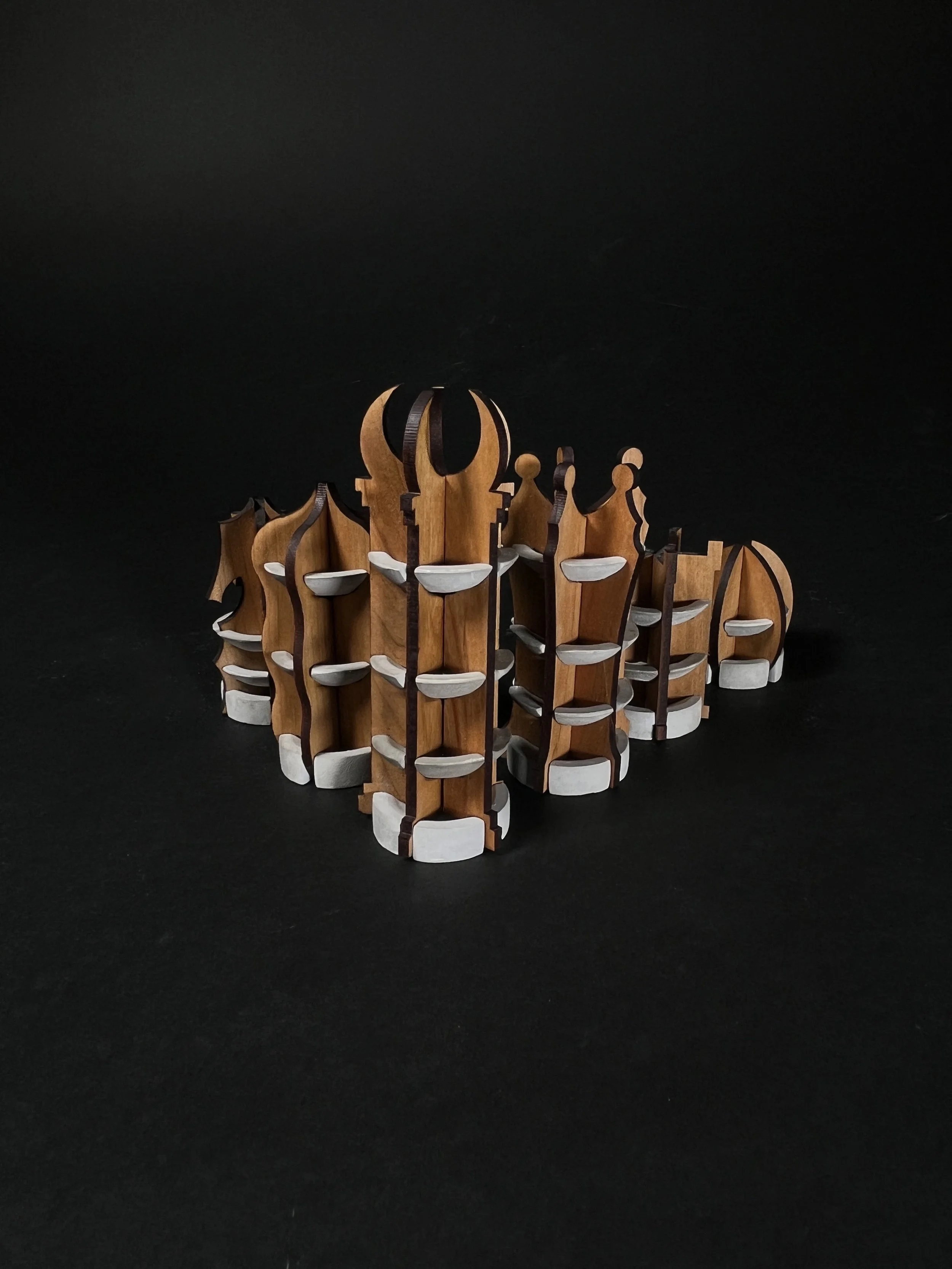 Laser cut wooden profiles to ensure precision and manufacturability and to add a darkened edge for contrast.
