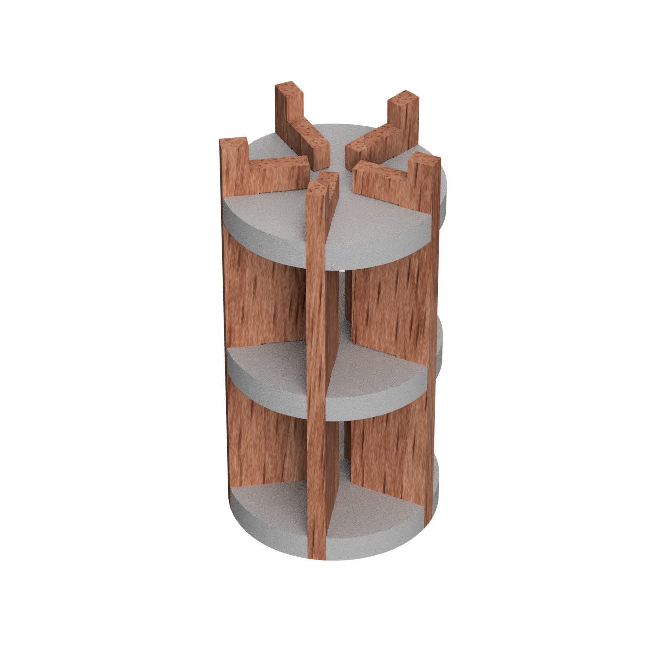 Echo wooden profiles five times around to utilize radial symmetry while maintaining cleanliness and interest through economy.