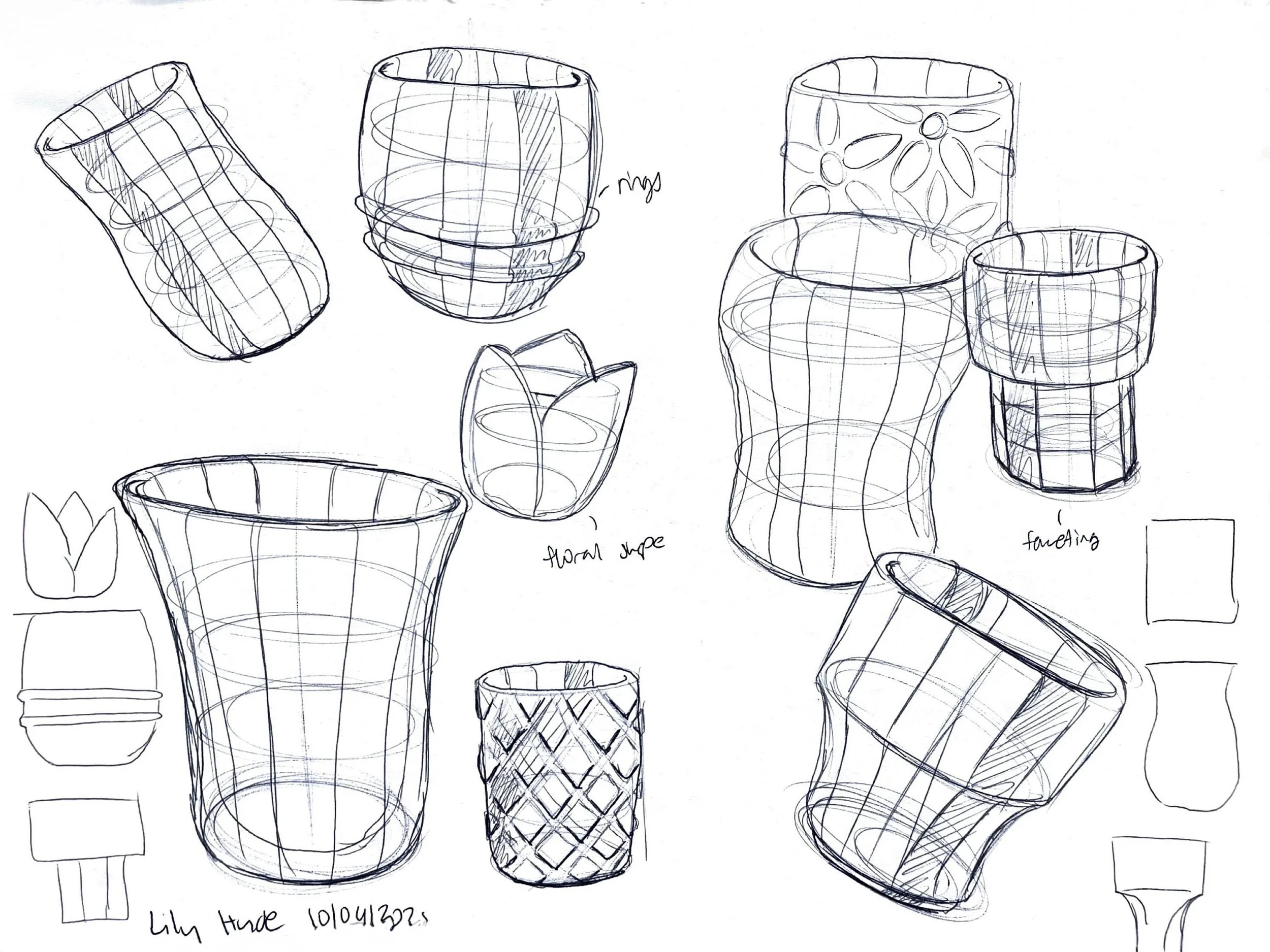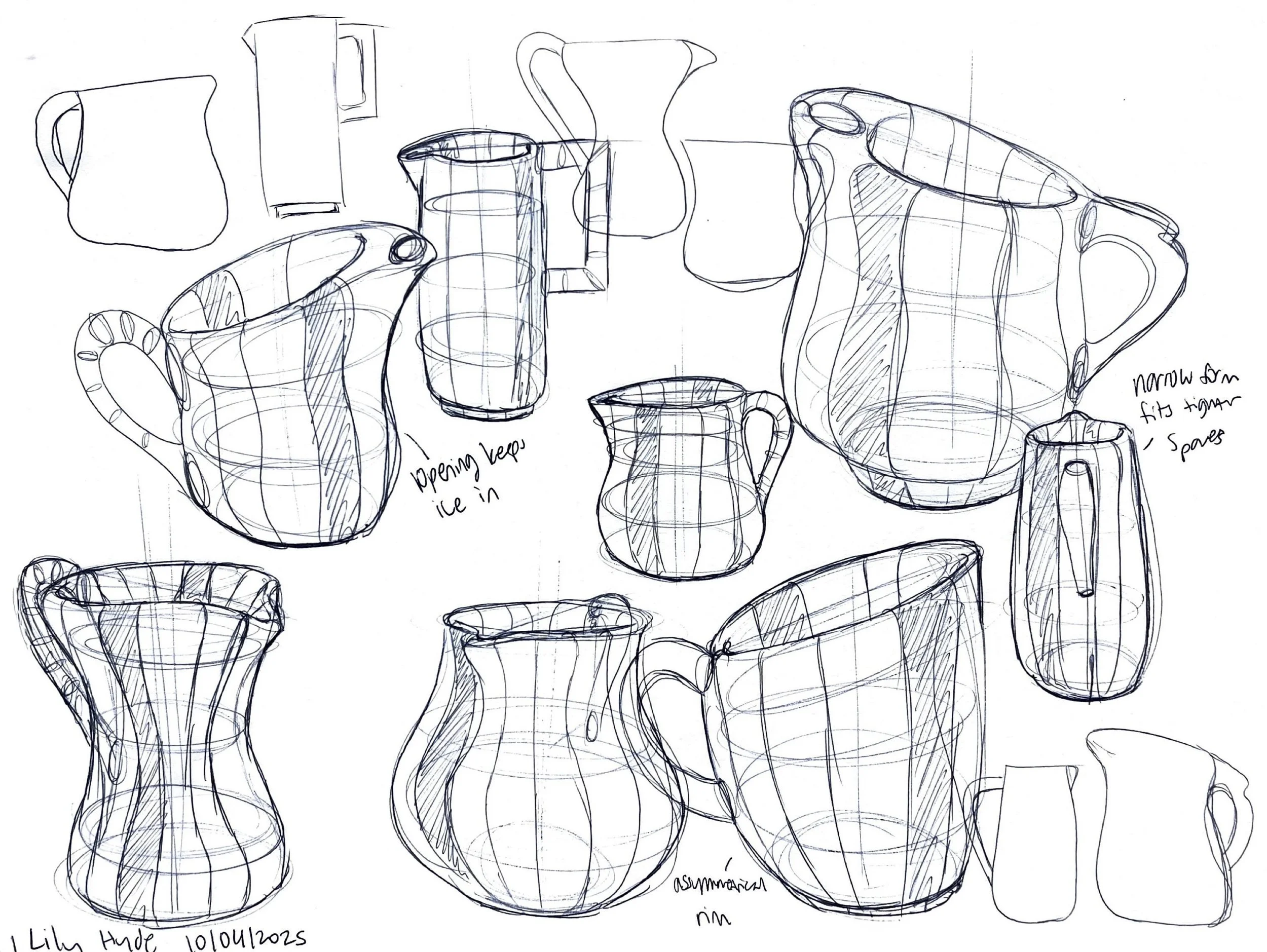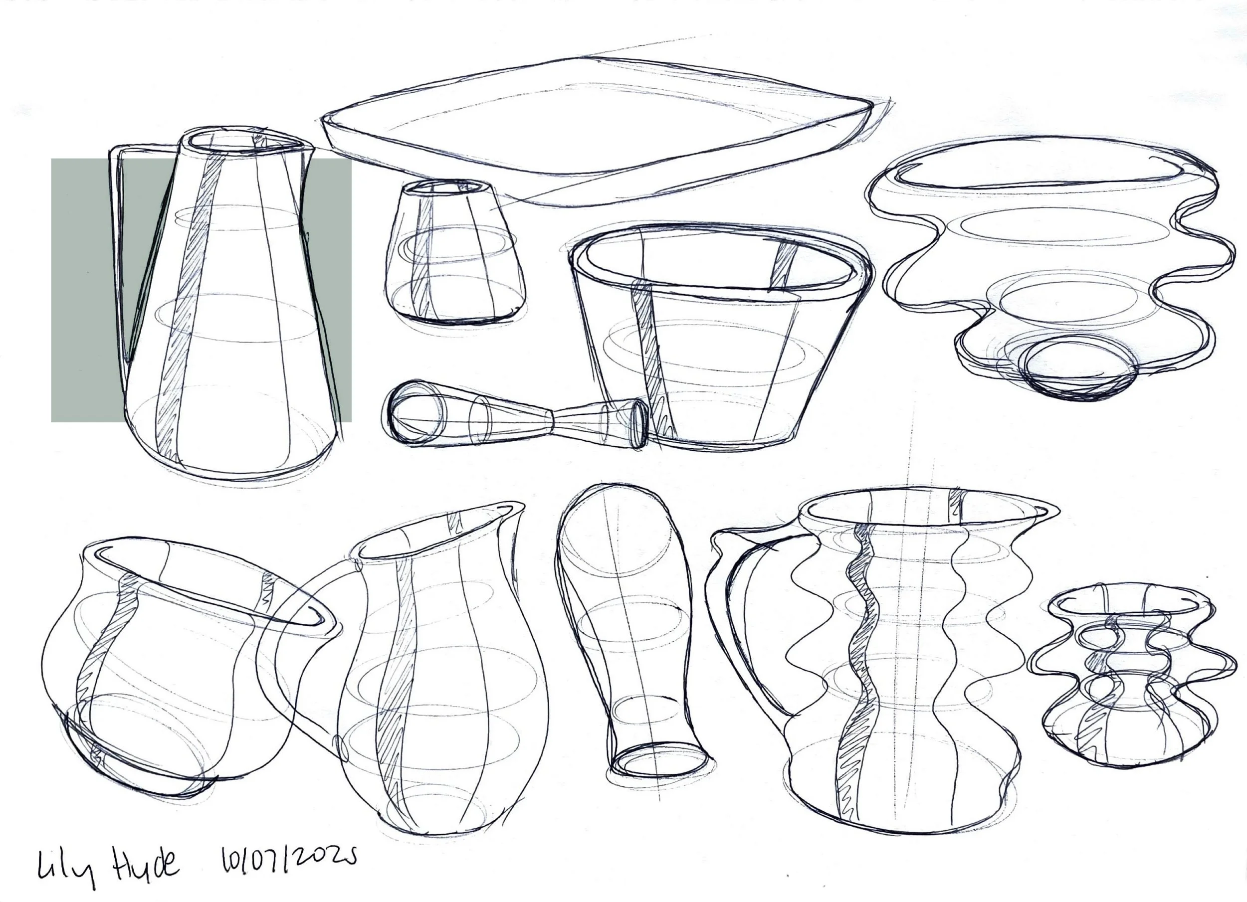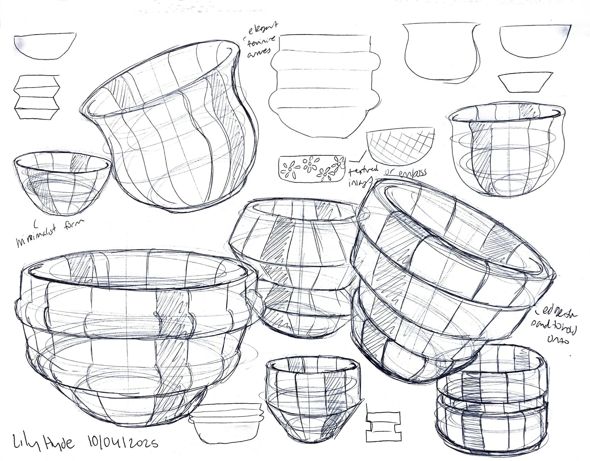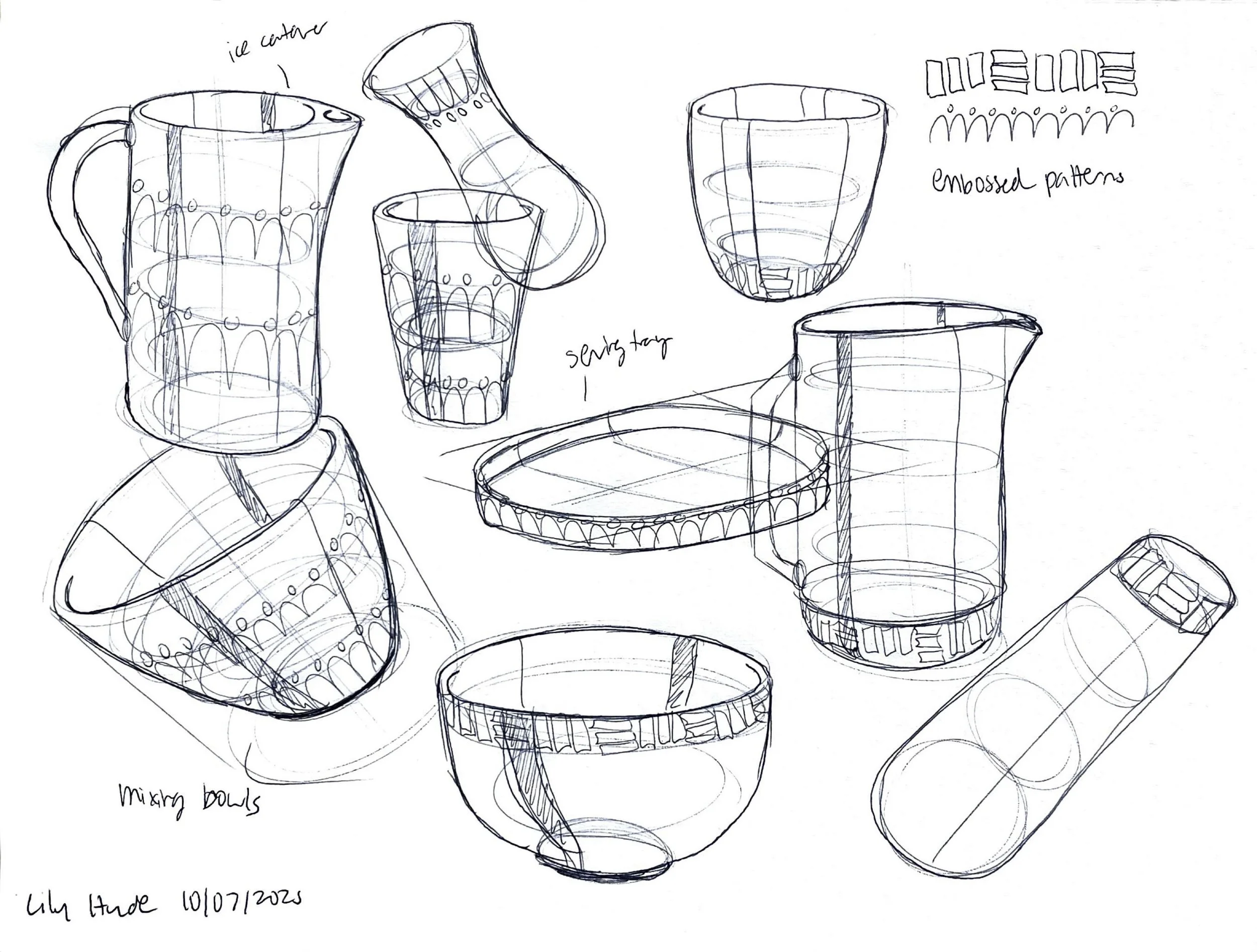 Exploring forms for different pieces, considering how pieces will be identified as a set, playing with ergonomic interactions
