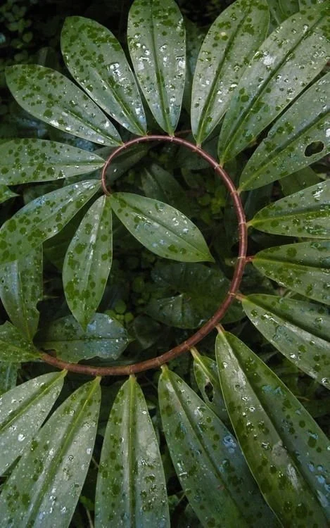 Combined materials, nature-inspired color palette, lightweight appearance, interwoven aspects, accessible function, and playing with shadows